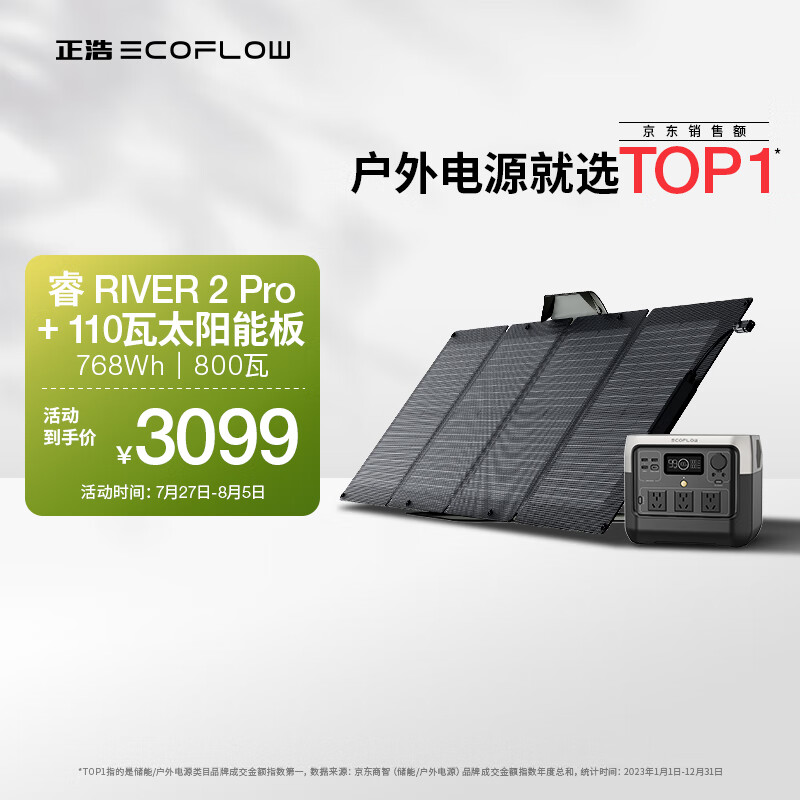 ECOFLOW正浩【睿2Pro+110W套装】快充移动户外电源220V 800W自驾露营停电应急备用笔记本充电宝768Wh价格:3099.00元!