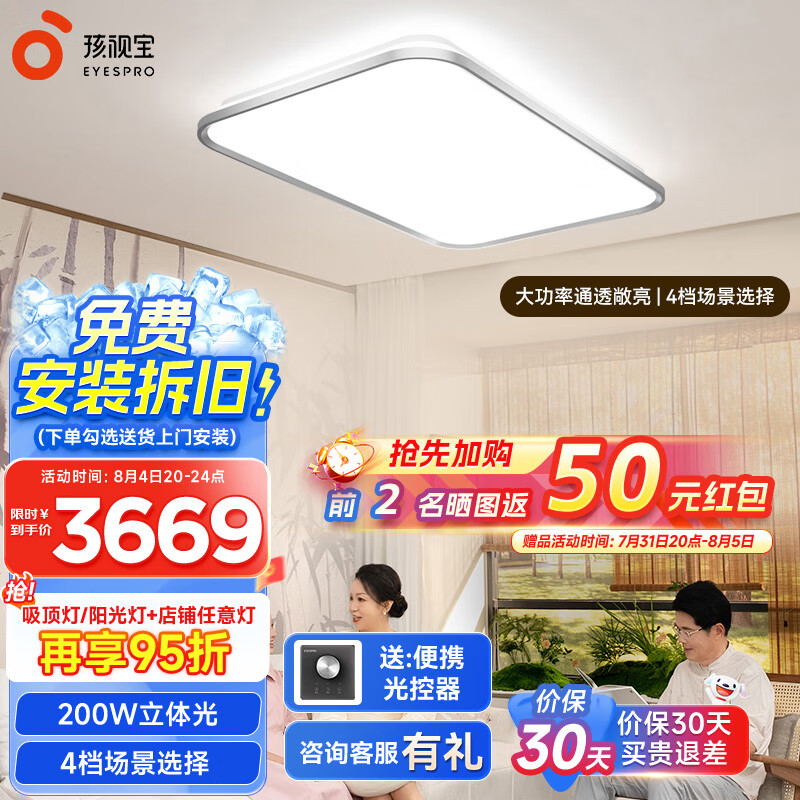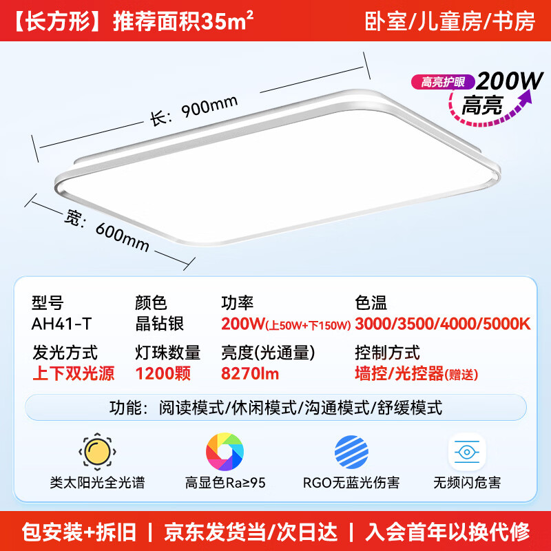 孩视宝卧室护眼吸顶灯全光谱客厅儿童房防蓝光频闪led灯具AH41-T价格:4455.00元!