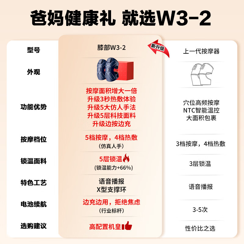 SKG膝盖按摩仪膝部按摩器膝关节腿部保暖电加热护膝热敷老寒腿 七夕情人节礼物送男女友生日礼品 【四区按揉 巨能暖】W3 2代礼盒款价格:699.00元!