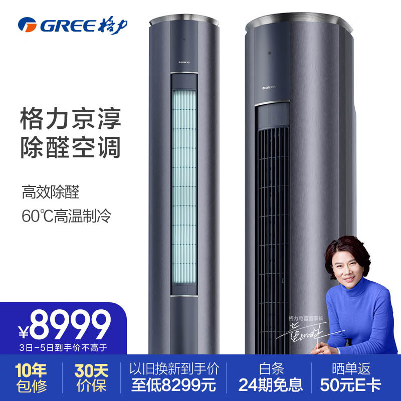 格力(GREE)2匹 京淳 高效除甲醛 空调空气净化器一体机 客厅空调立式空调柜机 格力空调KFR-50LW/NhDj1BGj价格:8999.00元!