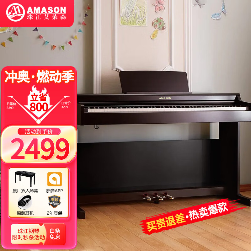 艾茉森(Amason)珠江钢琴 考级电钢琴88键重锤数码电子钢琴专业成人儿童V03S价格:3299.00元!