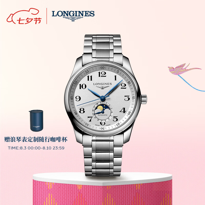 浪琴(LONGINES)瑞士手表 名匠系列 月相机械钢带男表 L29094786价格:21300.00元!