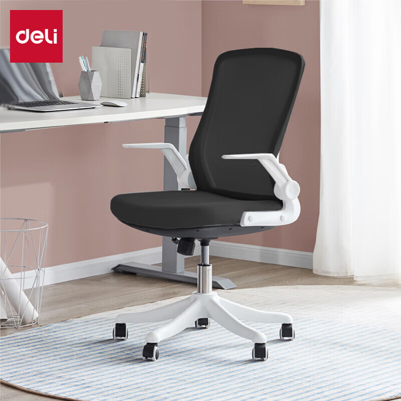 得力(deli)91106椅背扶手可翻折电脑椅 简约撞色办公椅 家用学习座椅 黑色价格:399.00元!