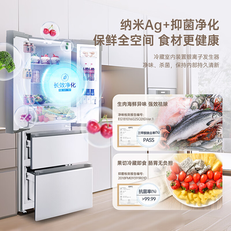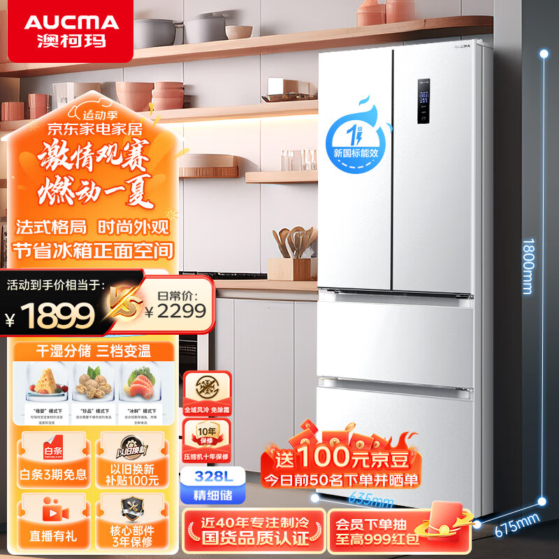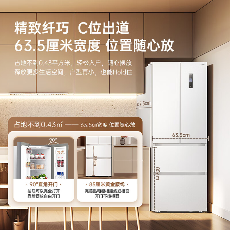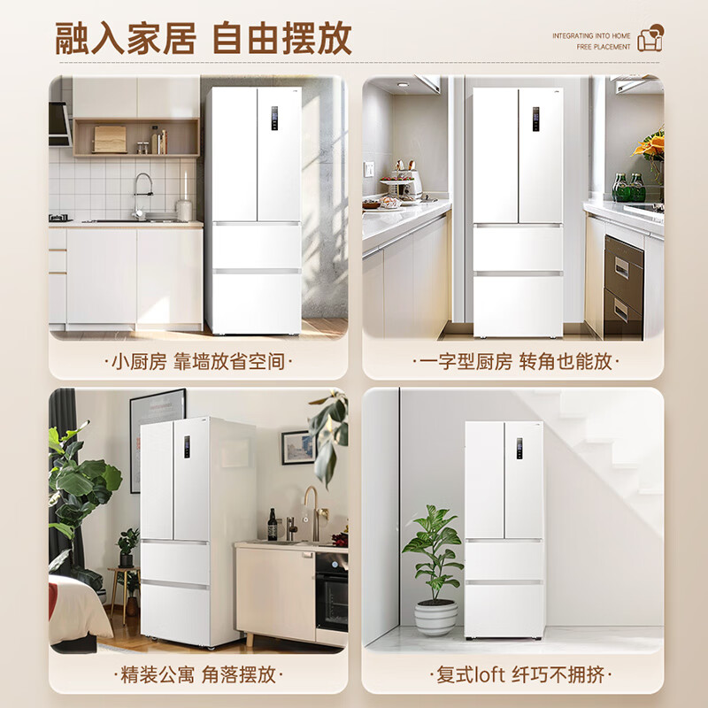 澳柯玛(AUCMA)328升冰箱家用租房用法式冰箱四开门无霜冰箱一级能效双变频电冰箱 以旧换新 BCD-328WPNE价格:2099.00元!
