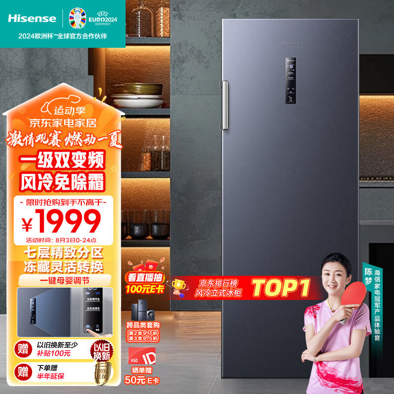海信(Hisense)240升立式冰柜 变频一级能效风冷无霜冷柜 母婴母乳冷藏冷冻抽屉式单门冰箱BD-240WPVUT价格:1999.00元!