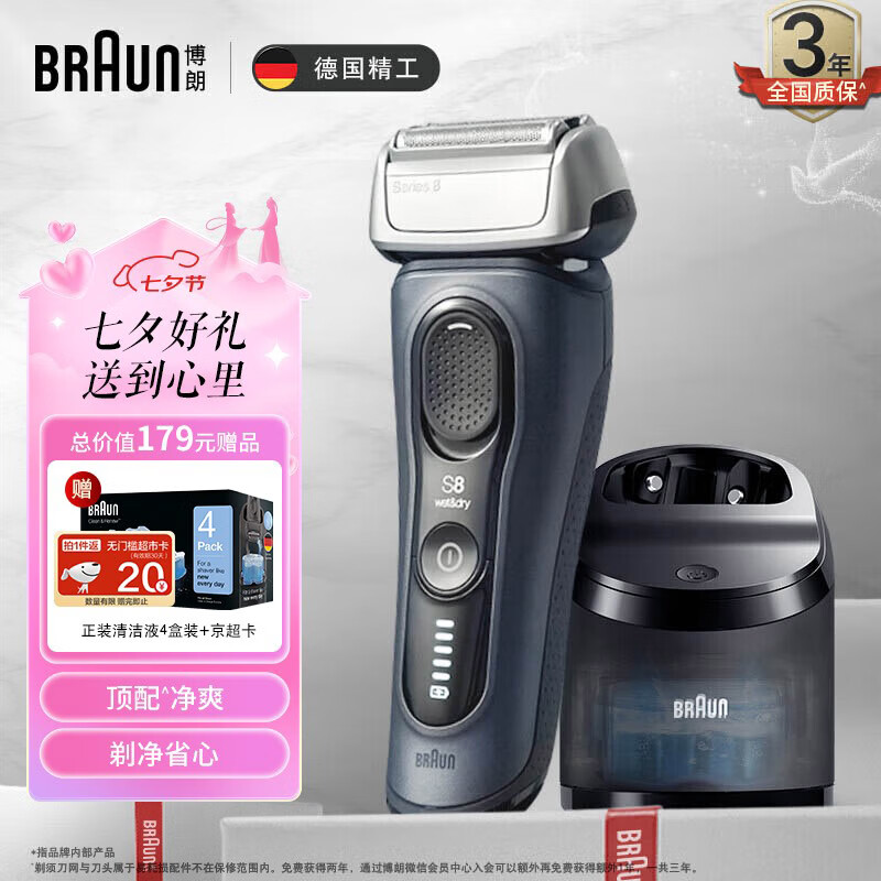 博朗(BRAUN)旗舰8系Pro清洁款电动剃须刀整机德国进口往复式剃须刀刮胡刀送男朋友生日礼物 男七夕情人节礼物价格:1299.00元!