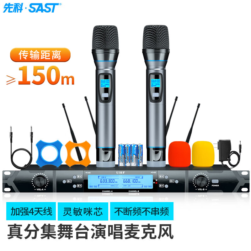 先科(SAST)OK-115 麦克风真分集无线话筒麦克风一拖二舞台演出ktv歌防啸叫麦克风远程U段婚庆电容学校庆典价格:1099.00元!