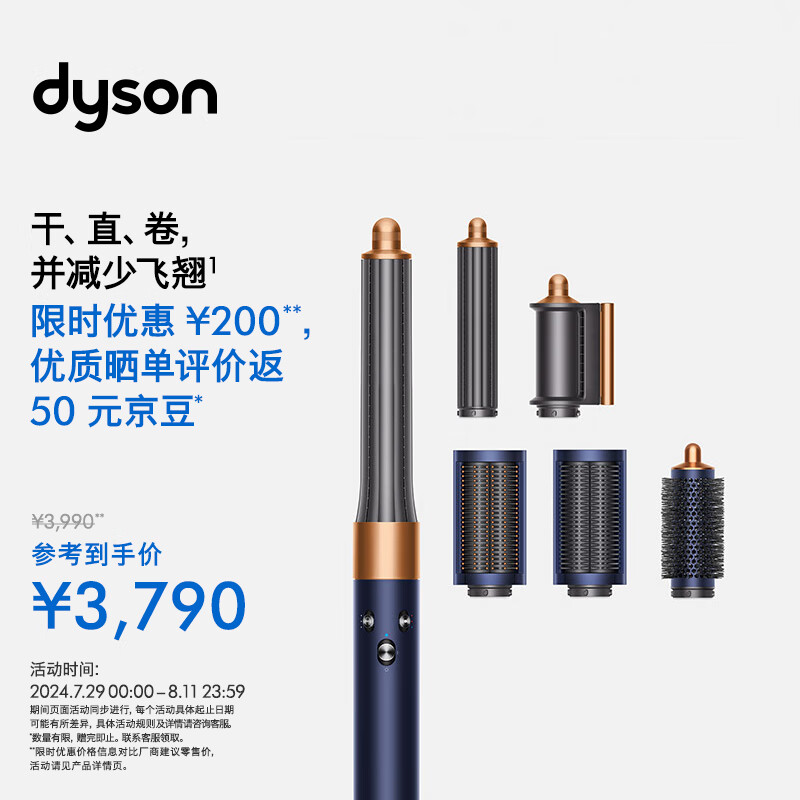 戴森(DYSON)多功能美发棒 Airwrap Complete空气卷发棒 多功能合一 旗舰套装 藏青铜色 长发版价格:3790.00元!