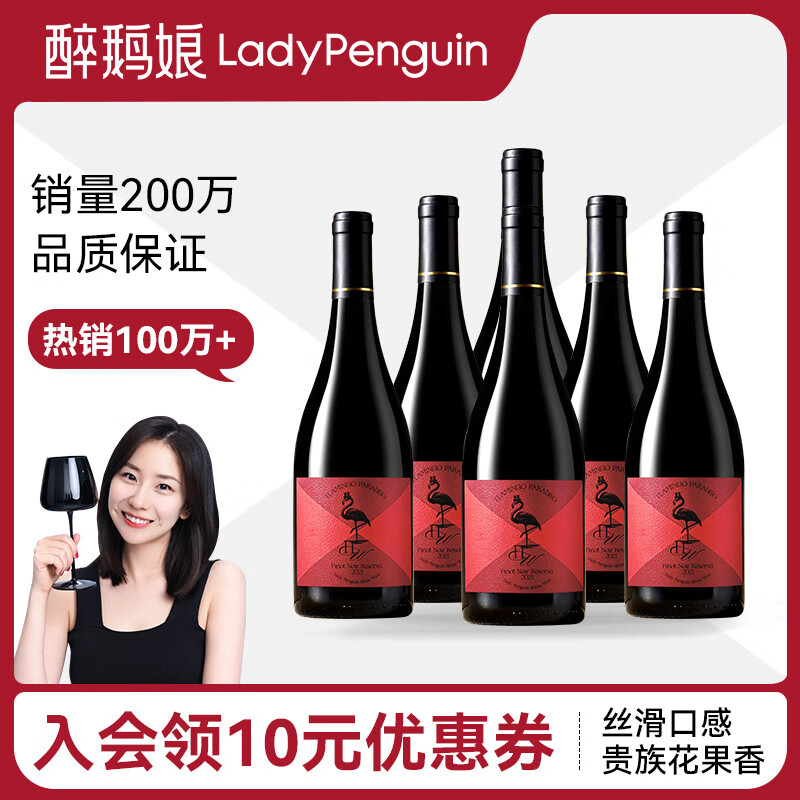 醉鹅娘 如饴火烈鸟酒系列红鸟黑皮诺智利进口干红葡萄酒750ml*6整箱装价格:509.00元!