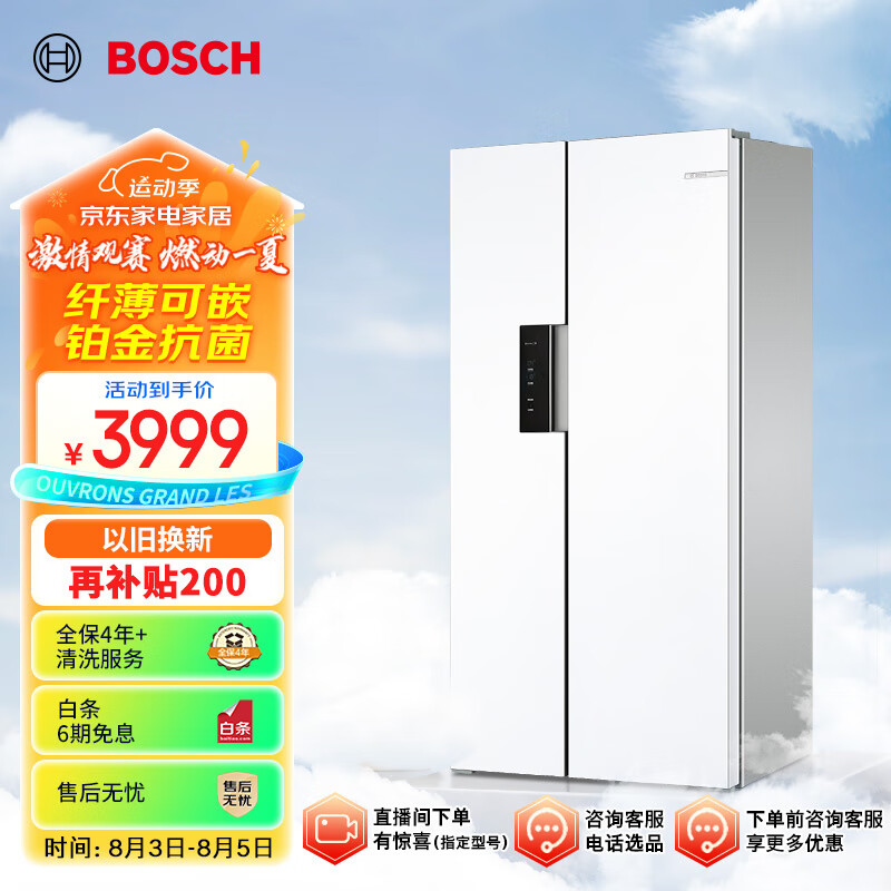 博世(BOSCH)【云朵白】502升超薄可嵌入式变频大容量风冷无霜对开双开门家用冰箱BCD-502W(K1EA50209C)价格:4199.00元!