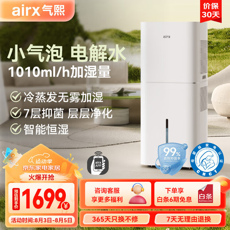 airx气熙 无雾加湿器 高端智能恒湿母婴健康卧室家用办公室空气加湿净化器H8Pro 高端无雾加湿1010ml价格:1899.00元!