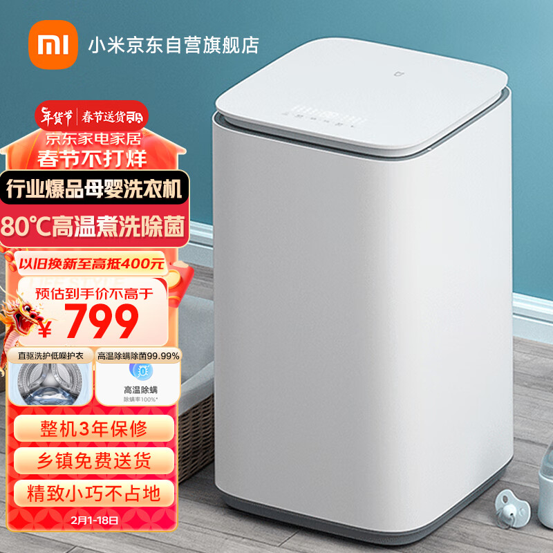 米家小米出品波轮洗衣机全自动 3公斤迷你婴儿小型儿童内衣洗衣机小 高温煮洗深度除螨 XQB30MJ101价格:799.00元!