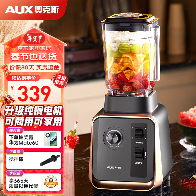 奥克斯(AUX)破壁机 2L大容量碎冰机商用创业多功能料理机轻音减震自动洗家用沙冰机刨冰机豆浆机搅拌果汁机价格:369.00元!