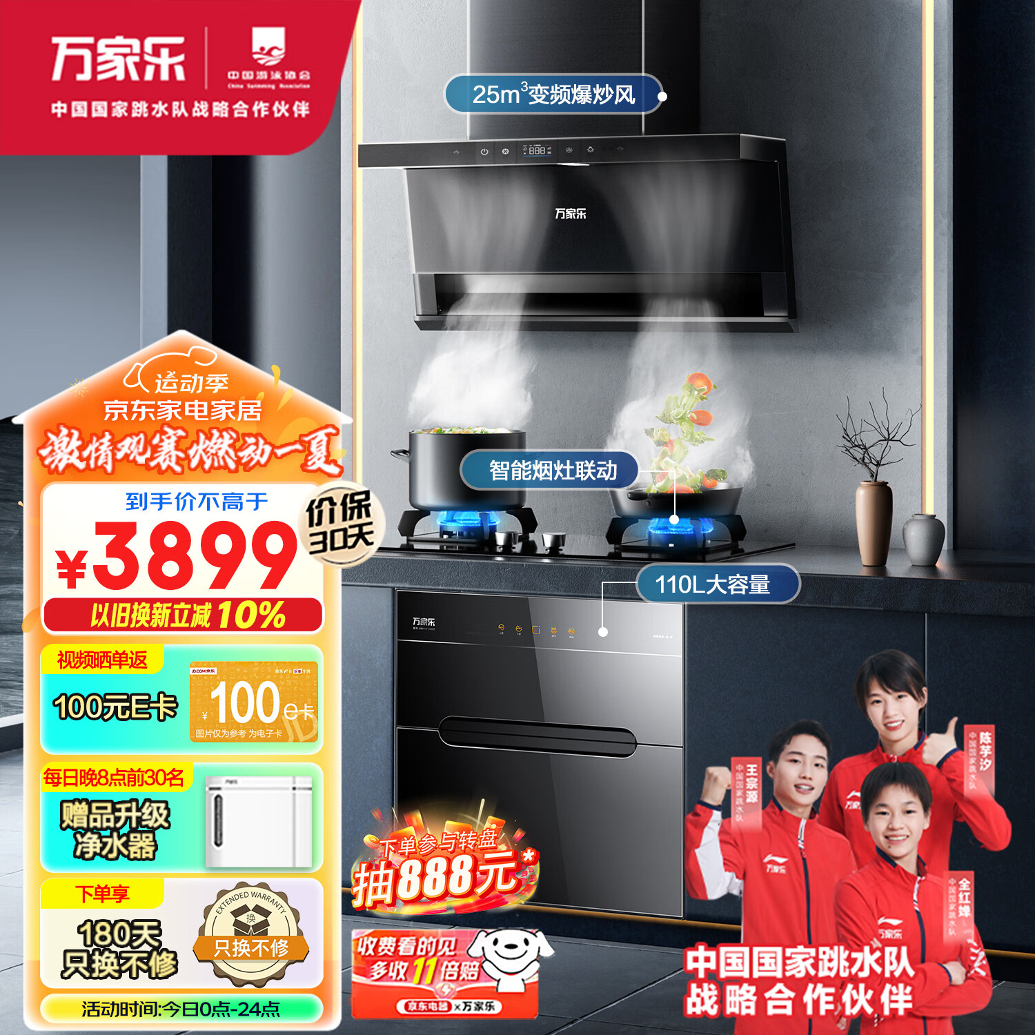 万家乐 抽油烟机烟灶消厨房三件套25m3/min顶侧三吸变频巡航烟灶联动厨房三件套TAK8+KV063B+DQ052天然气价格:3999.00元!
