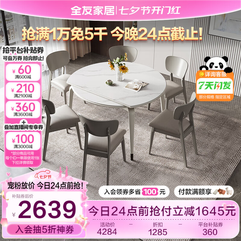 全友家居 餐桌现代简约岩板餐桌可圆可方伸缩功能吃饭桌子家具DW1121价格:4284.29元!