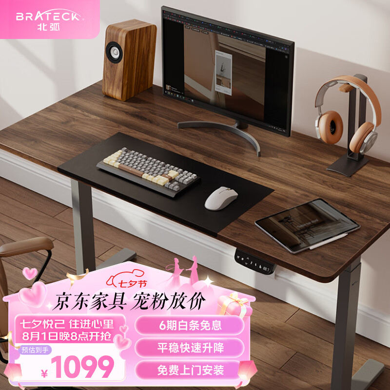Brateck电动升降电脑桌 北弧站立办公升降电脑桌 工作升降台 K2棕1.2米价格:1259.00元!