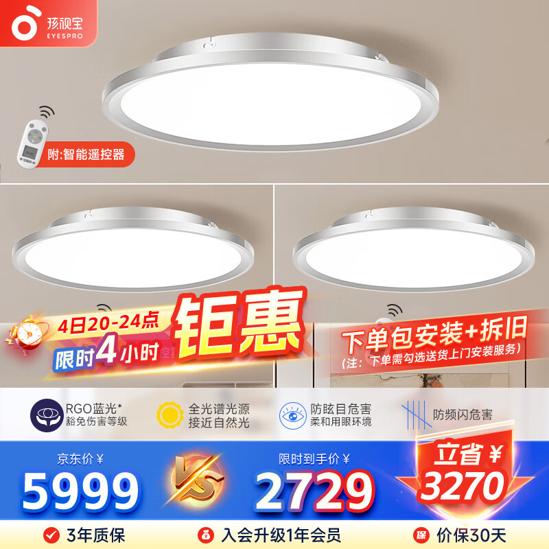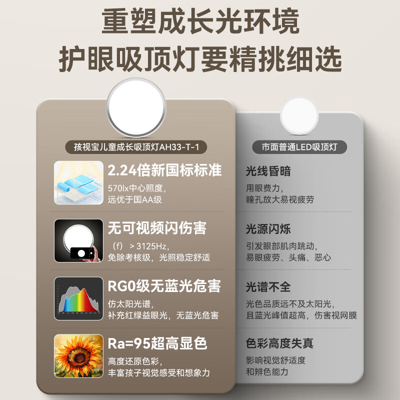 孩视宝护眼吸顶灯客厅灯卧室灯全光谱书房儿童房防蓝光【AH33-T-1*3】价格:5989.00元!
