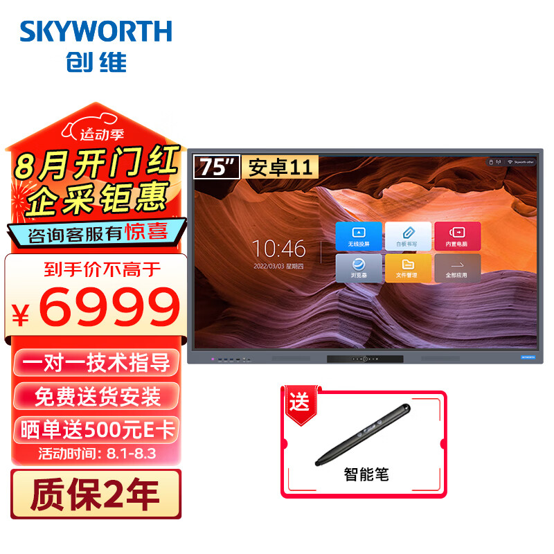 创维(Skyworth)75英寸会议平板智能触摸一体机电子白板书写无线传屏投影教育培训视频会议电视75DSH5商用显示价格:6999.00元!