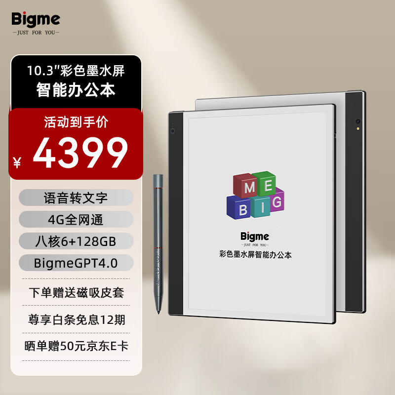 BIGME大我inkNote Color+ 双摄像头智能办公本经典版10.3英寸彩色墨水屏电子书阅读器彩屏电纸书价格:4399.00元!
