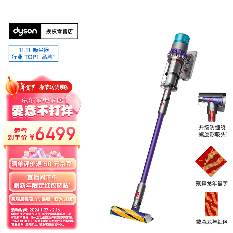 戴森(DYSON)G5 Detect Absolute手持无线吸尘器 除螨 宠物 家庭适用价格:6499.00元!