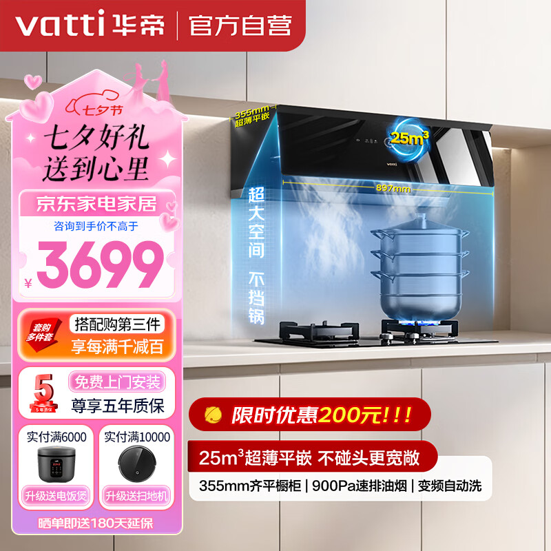 华帝(VATTI)抽油烟机家用变频大吸力烟机燃气灶烟灶套装25风量自动清洗侧吸油烟机灶具套装i111A2液化气价格:3899.00元!