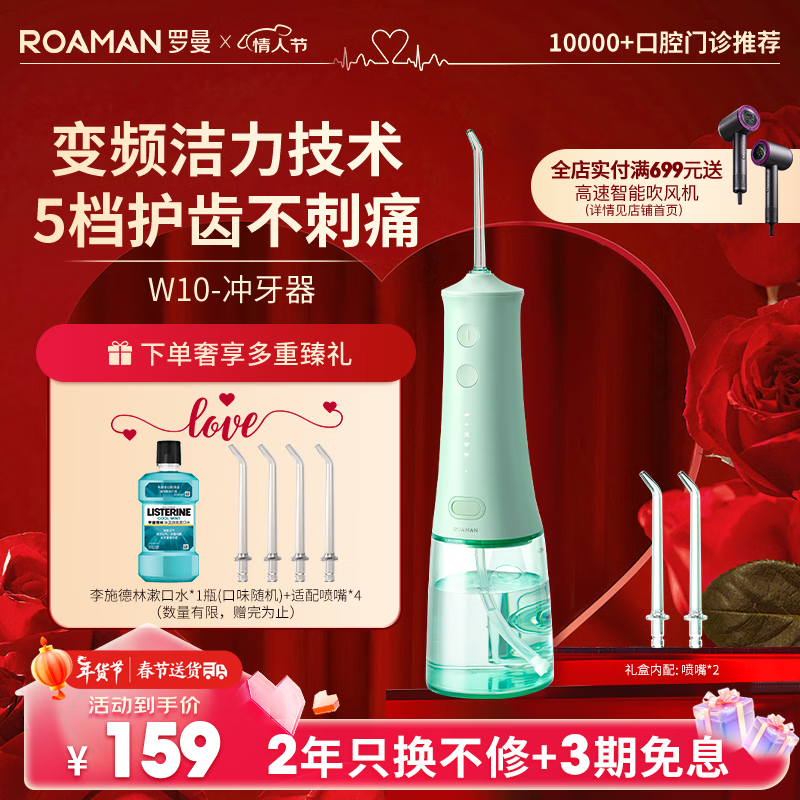 罗曼(ROAMAN)小宝塔冲牙器 洗牙器 水牙线 洁牙器 洁牙机 便携式冲牙器 台式冲牙器 W10薄荷绿 新年情人节礼物价格:169.00元!