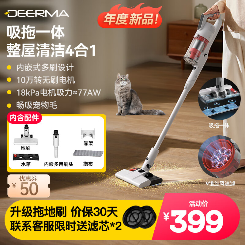 德尔玛(Deerma)T20无线吸尘器家用 吸拖一体车用宠物便携式干吸湿拖吸尘器 3合1吸尘/去毛/拖地 七夕礼物价格:449.00元!