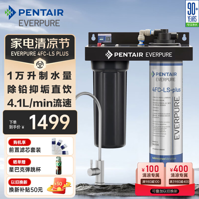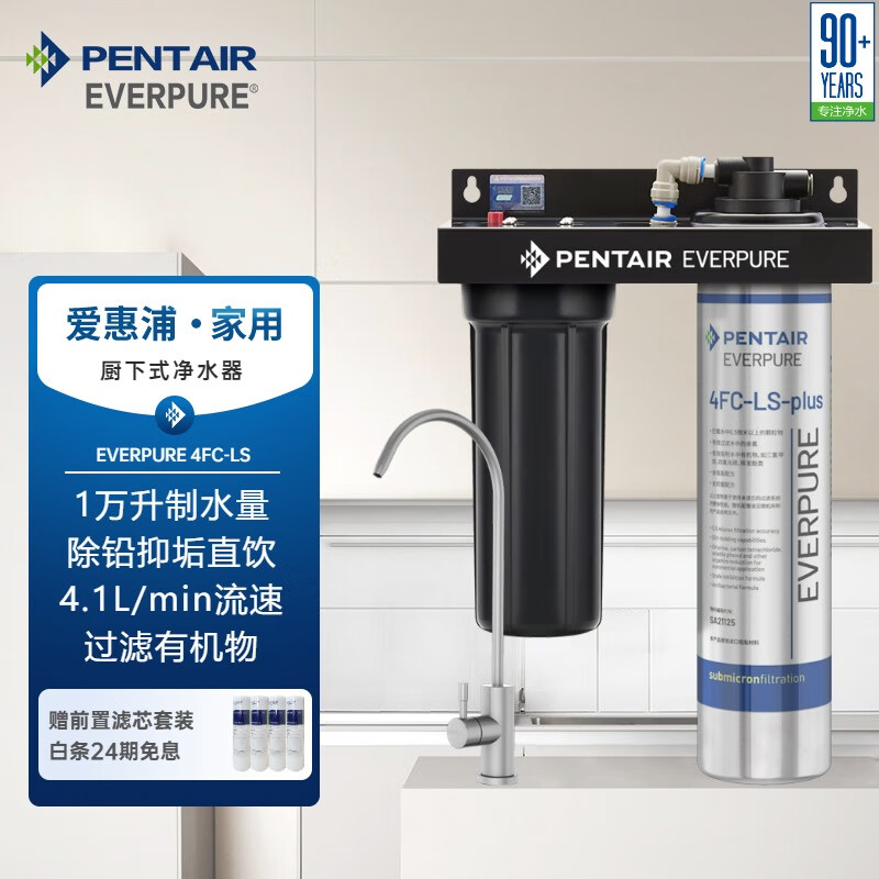 爱惠浦(Everpure)家用厨下 母婴除铅直饮矿物质水 4.1L/min 大流量0废水净水器 10000L额定净水量4FC-LS Plus价格:1599.00元!