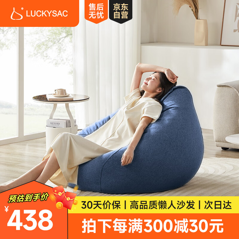 LUCKYSAC懒人沙发豆袋EPP 单人休闲布艺客厅卧室阳台小沙发 舒适款皇家蓝价格:468.00元!