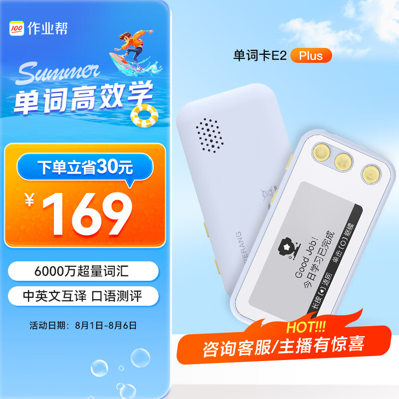 作业帮电子单词卡E2Plus 英语学习墨水屏单词机电子词典 背单词神器单词通 四六级专四专八高考考研价格:169.00元!