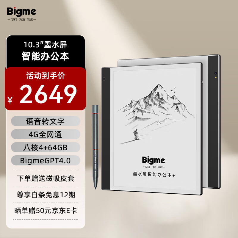 BIGME inkNoteS双摄像头智能办公本 10.3英寸墨水屏电纸书手写笔记本电子书阅读器价格:2649.00元!