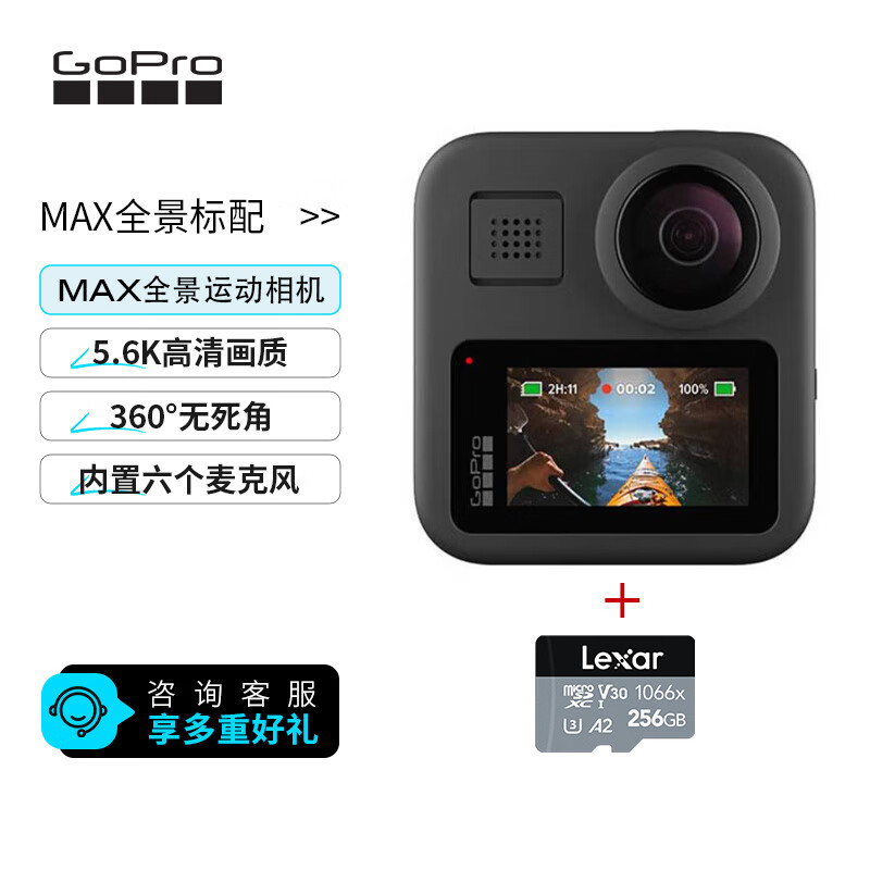 GoProMax全景标配 运动相机 户外摩托骑行防抖 水下潜水防水 滑雪照相机 加256G存储卡套组价格:4297.00元!