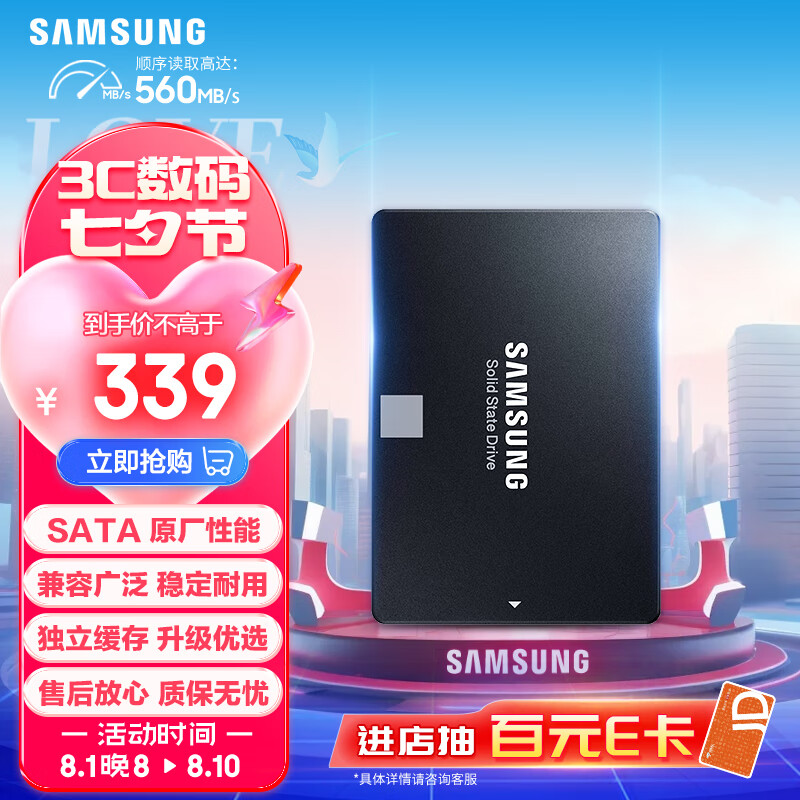 三星(SAMSUNG)250GB SSD固态硬盘 SATA3.0接口 独立缓存 AI电脑配件 读速560MB/S 870 EVO价格:339.00元!