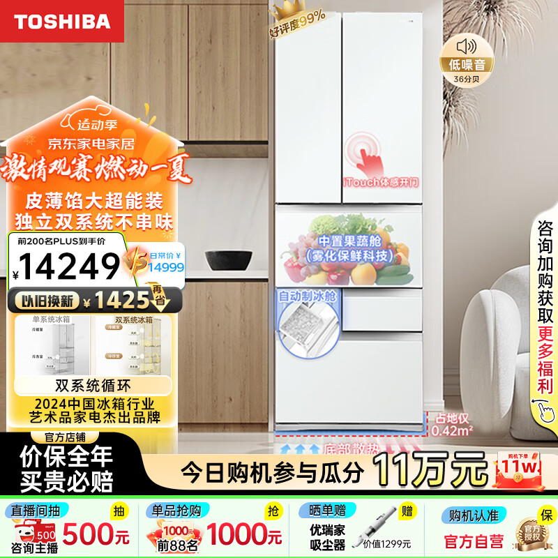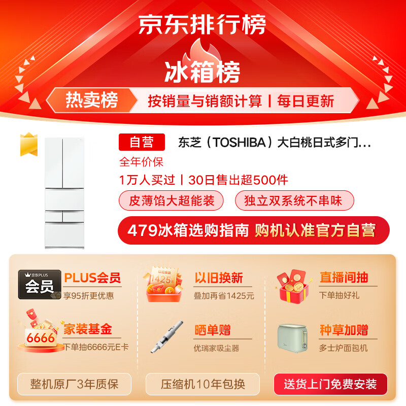 东芝(TOSHIBA)大白桃日式多门六门小户型大容量家用高端电冰箱超薄嵌入一级能效自动制冰冰箱GR-RM479WE-PG1B3价格:14993.00元!