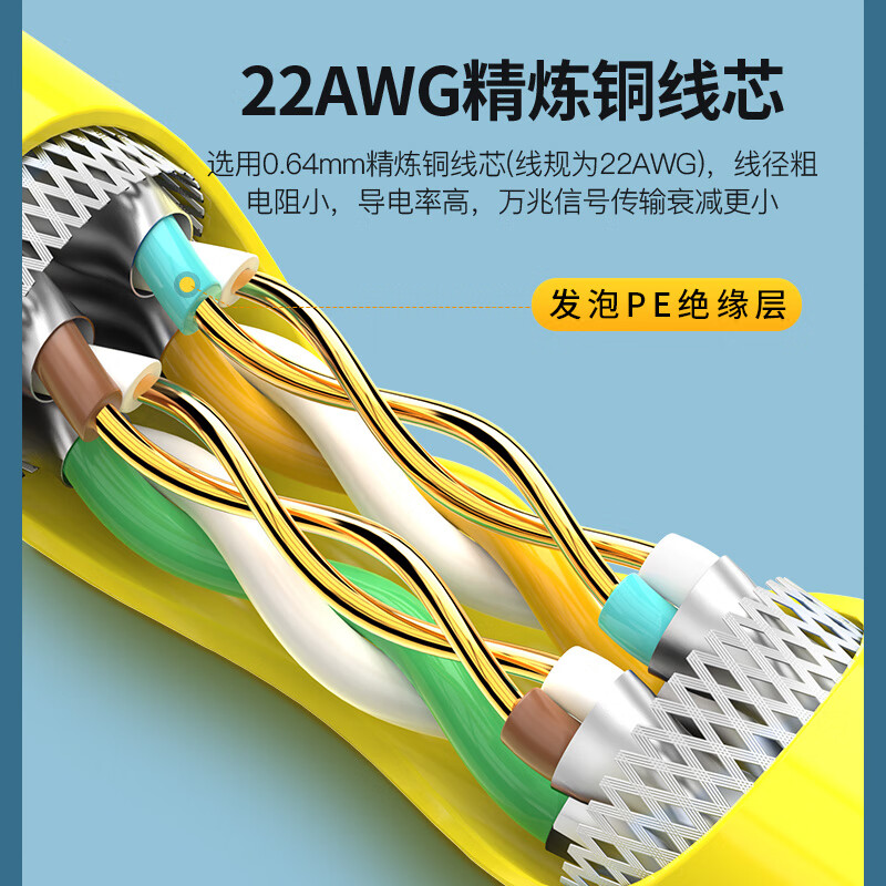秋叶原(CHOSEAL)八类双屏蔽工程网线【电竞级0.64mm】Cat8类万兆高速家装网络箱线黄色305米 QS2680YT305价格:2124.00元!