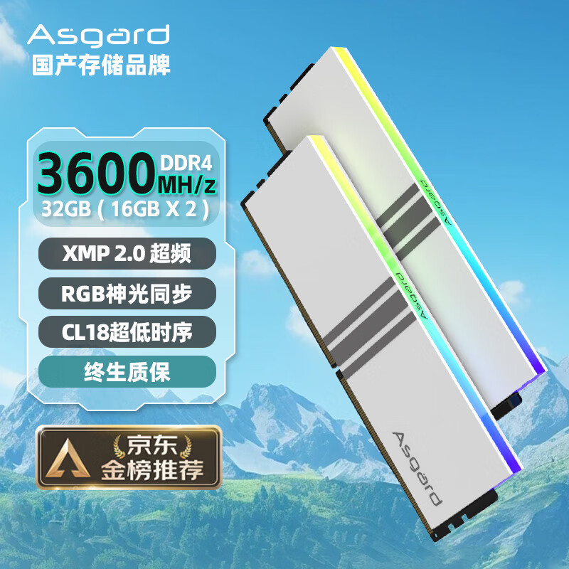 阿斯加特Asgard 女武神系列 DDR4 PC 32GB(16GB*2)3600 白甲价格参考: