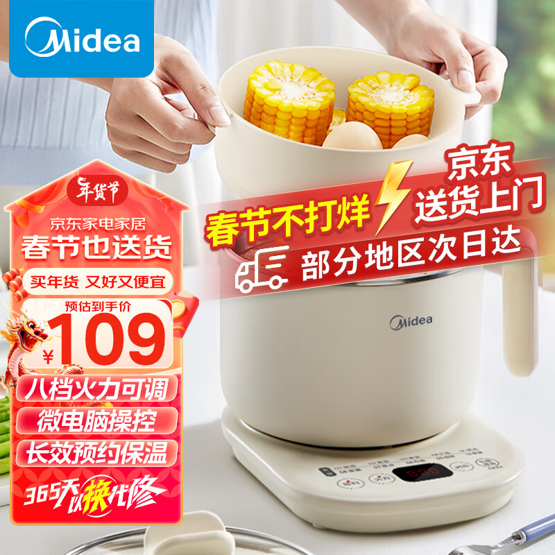 美的(Midea)电煮锅 宿舍小锅 小电锅 电热锅 学生蒸煮一体蒸屉电蒸锅 泡面火锅多功能锅 小煮艺养生锅YSG-02C价格:119.00元!