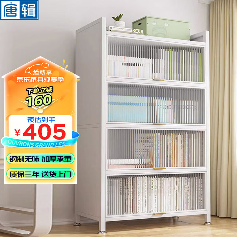 唐辑钢制书架书柜防尘落地多层带门铁艺书架置物架收纳储物柜五层长80价格:565.00元!