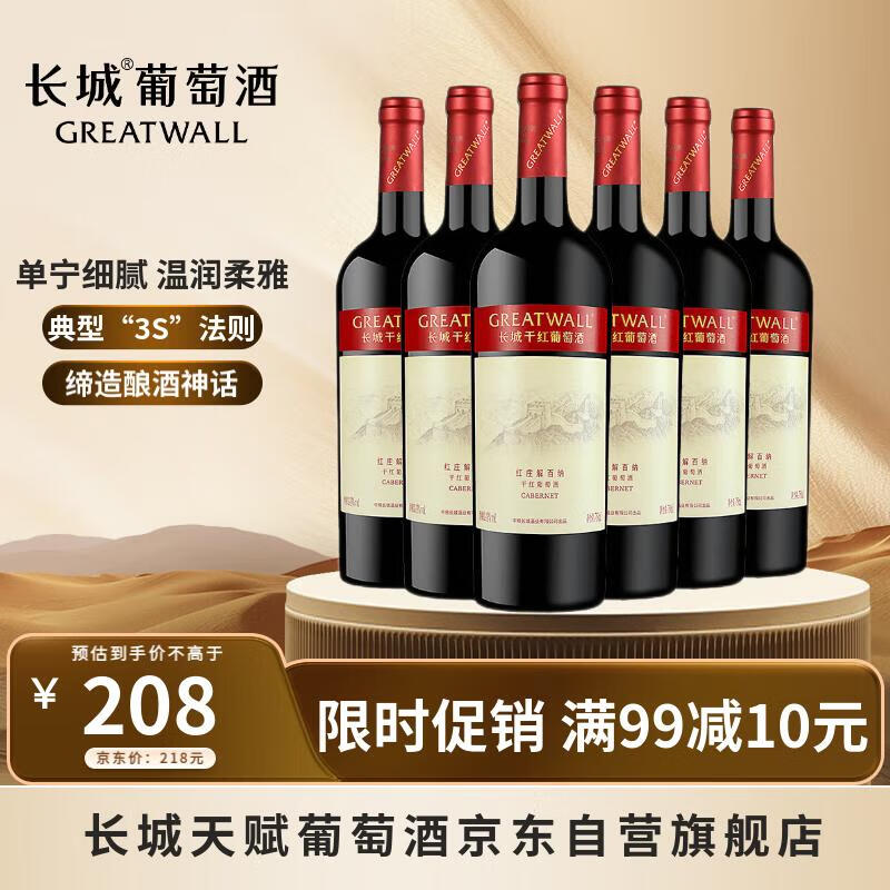 长城海岸葡园红庄解百纳干红葡萄酒750ml*6瓶 整箱装价格:218.00元!