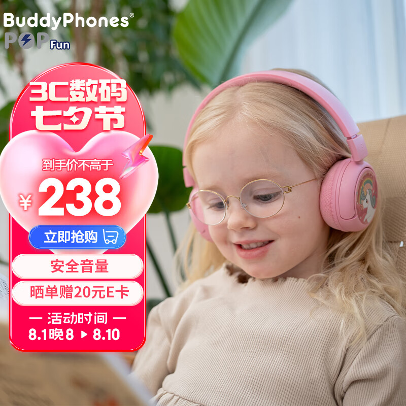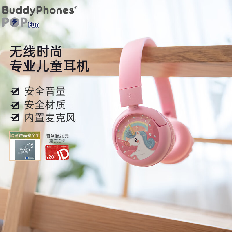 onanoff BuddyPhones儿童耳机音量头戴式蓝牙无线 网课学习教育学生耳机POPFUN粉色价格:298.00元!
