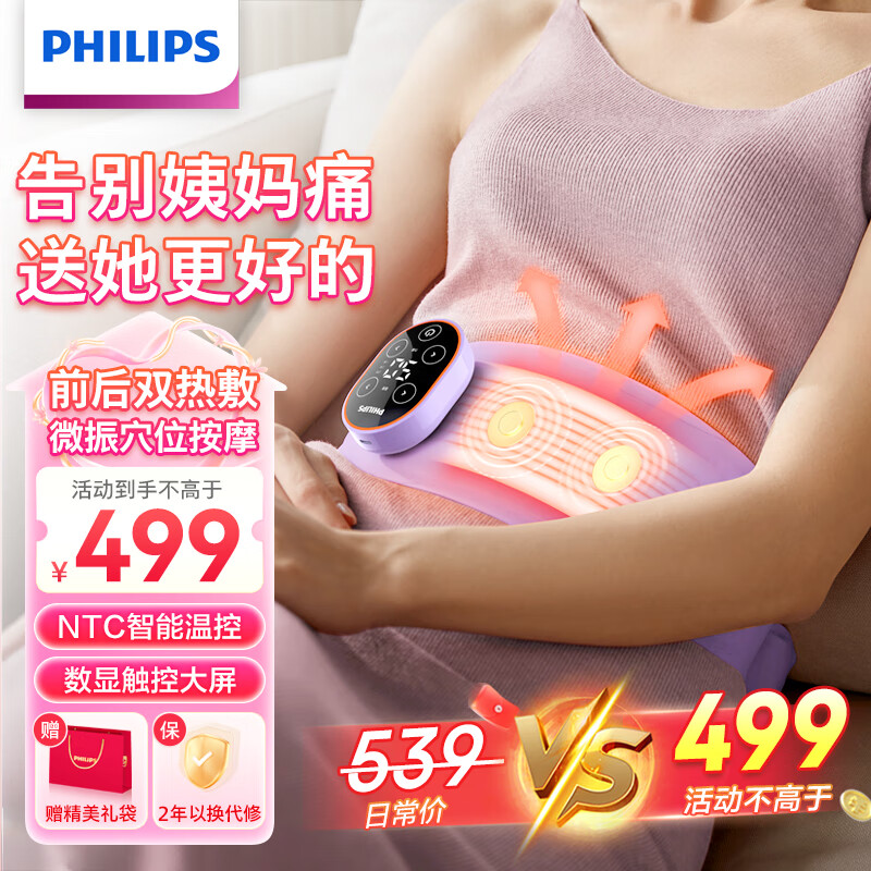 飞利浦(PHILIPS)腰部按摩仪 大姨妈神器热敷腹部按摩器生理期痛经暖腹仪隐形暖宫腰带 生日七夕情人节礼物 3202B价格:539.00元!