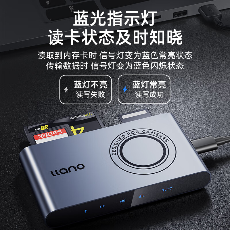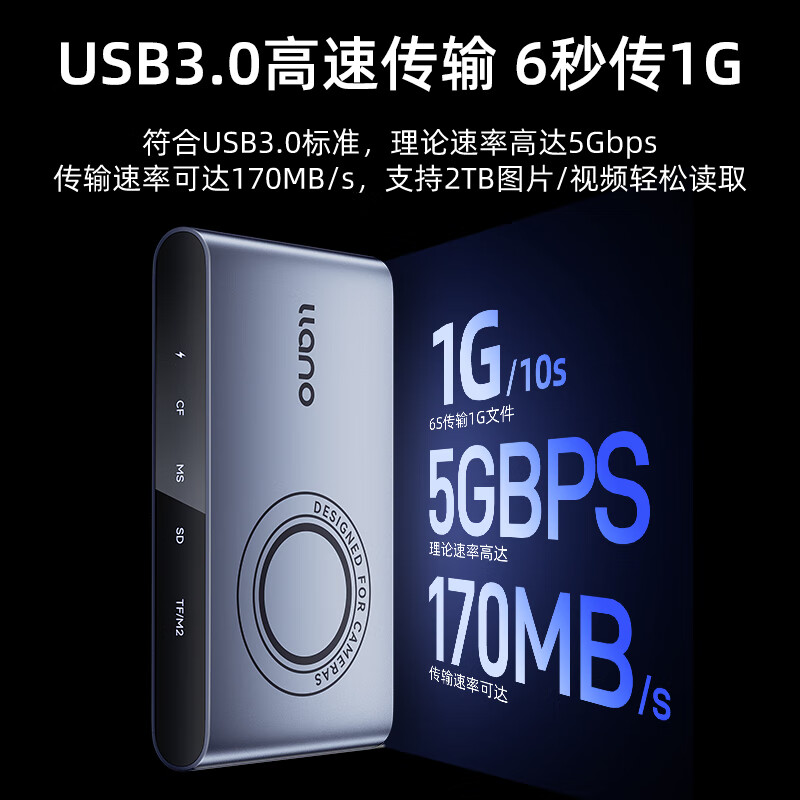 绿巨能USB3.0/Type-C读卡器 多功能五合一多卡同读 支持SD/TF/CF/MS/M2 单反相机行车记录仪监控内存卡价格:109.00元!