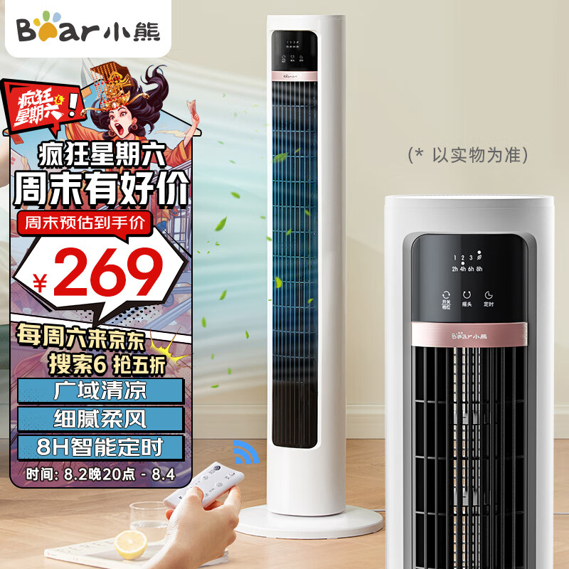 小熊(Bear)电风扇落地扇无叶风扇塔扇立式风扇空气循环扇智能遥控风扇办公室风扇 DFS-D40J2价格:269.00元!