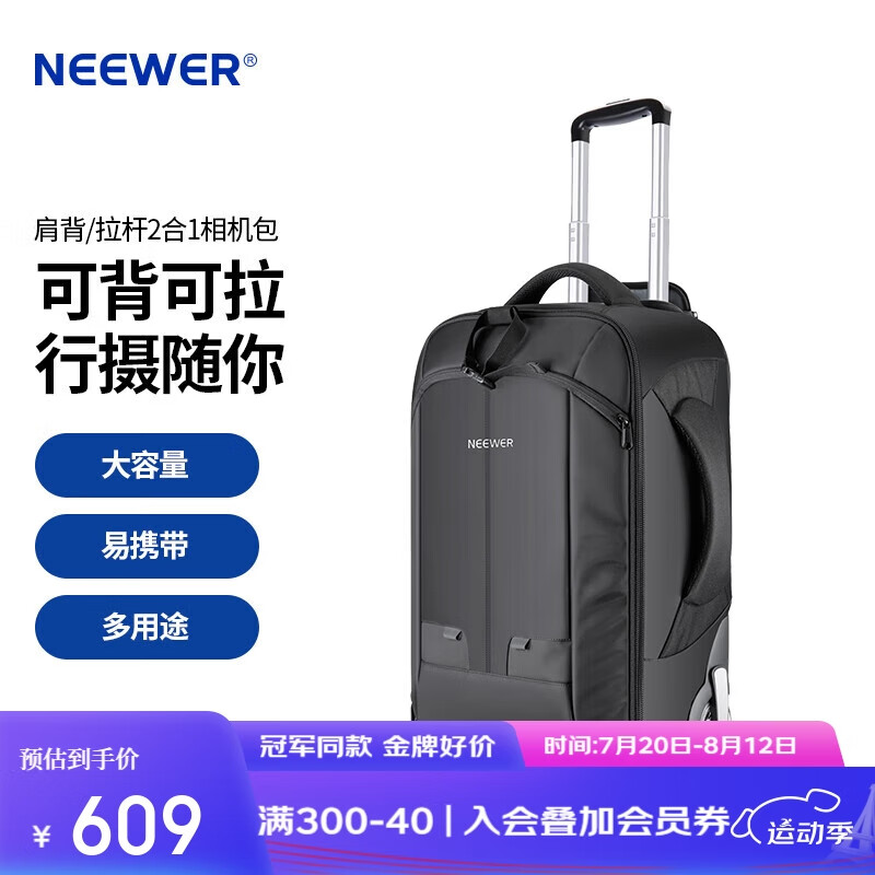 纽尔(NEEWER)NW3300相机包拉杆箱大容量双肩包带滚轮 专业摄影镜头包户外旅行摄影拉杆箱单反相机防水包价格:649.00元!