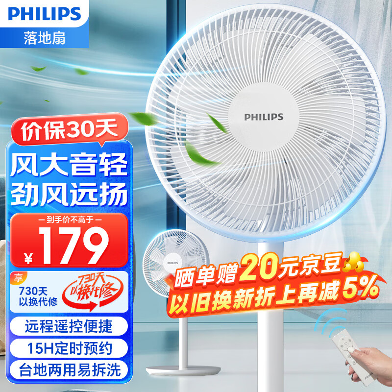 飞利浦(PHILIPS)电风扇落地扇家用七叶轻音台地两用立式电扇3D送风柔风节能大风量遥控定时小风扇 ACR2142SFD价格:239.00元!