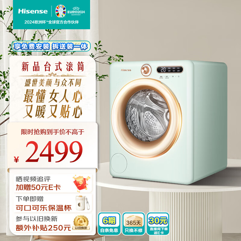 海信(Hisense)罗马假日直驱滚筒洗烘一体洗衣机内衣机复古小型迷你2kg母婴除菌活水洗科技WD20R4价格:2499.00元!