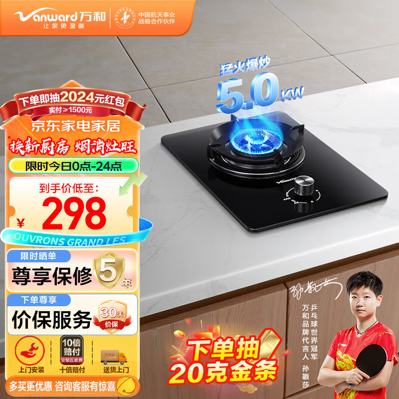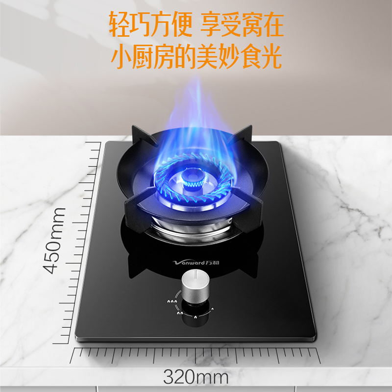 万和(Vanward)钢化玻璃燃气灶单灶具 单眼灶嵌入式 5.0kW大火力 台嵌两用煤气炉煤气灶 JZY-E6L90 液化气价格:298.00元!