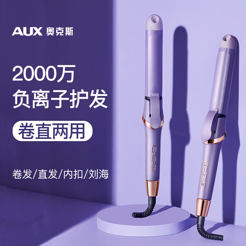 奥克斯(AUX)卷发棒负离子夹板直发卷发两用不伤发直板夹大卷内扣卷刘海夹卷发器拉直熨板HS-693紫色价格:129.00元!