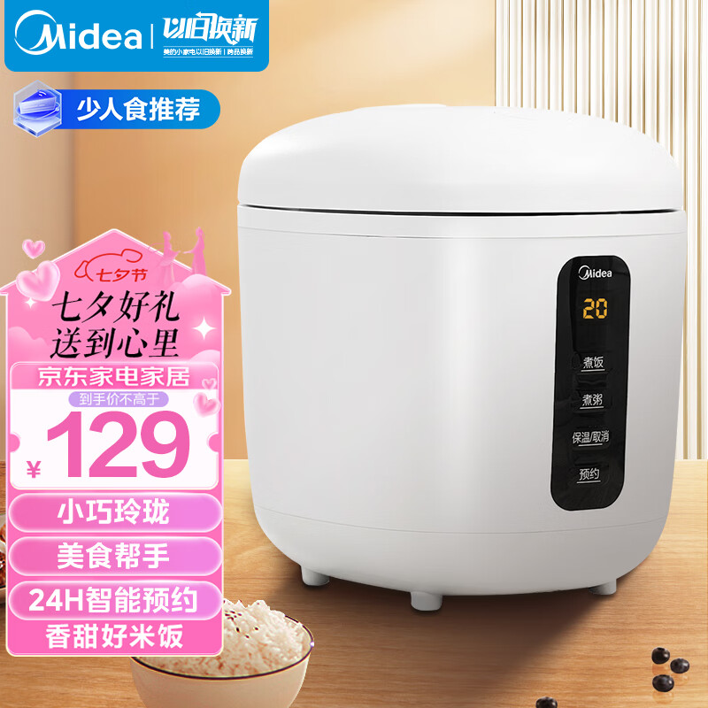 美的 (Midea)电饭煲电饭锅0.8L小容量迷你1-2人便携单人宿舍旅行FB08M301价格:118.00元!