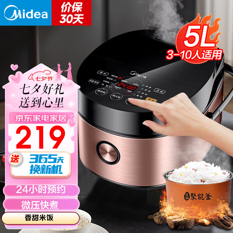 美的(Midea)电饭煲 5升大容量家用5-8个人商用智能电饭锅 24小时预约 触摸操控一键柴火饭多功能 5升微压快煮电饭煲 MB-FB50E511 5L价格:309.00元!